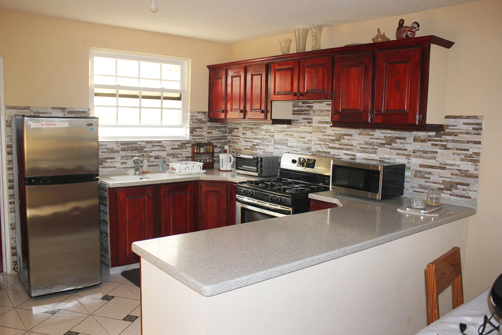 Fully equipped with a contemporary bathroom and kitchen. Two bedrooms, each featuring a queen bed, accommodating up to four guests.