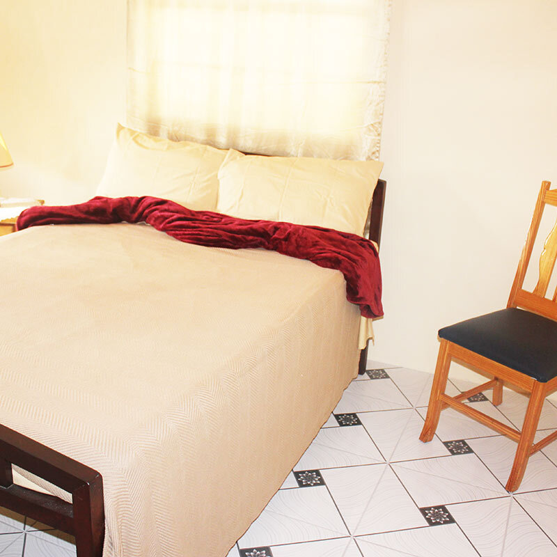 This unit comes fully furnished and includes a modern bathroom along with a well-equipped kitchen. The bedroom features a queen bed, comfortably accommodating up to two guests.